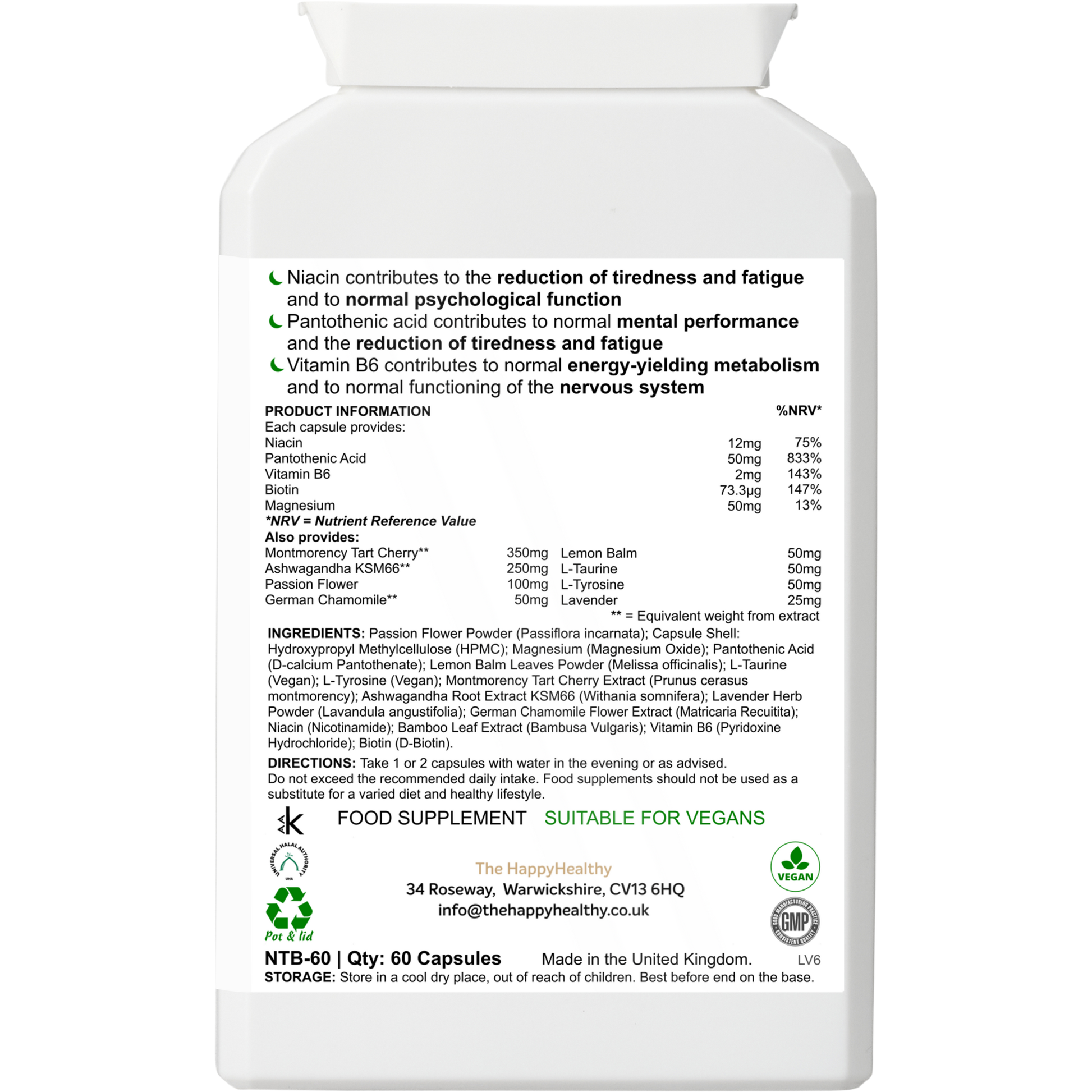 Magnesium – A crucial mineral for calming the body and mind, reducing muscle tension, promoting relaxation, and supporting normal psychological function—ideal for restless evenings.
