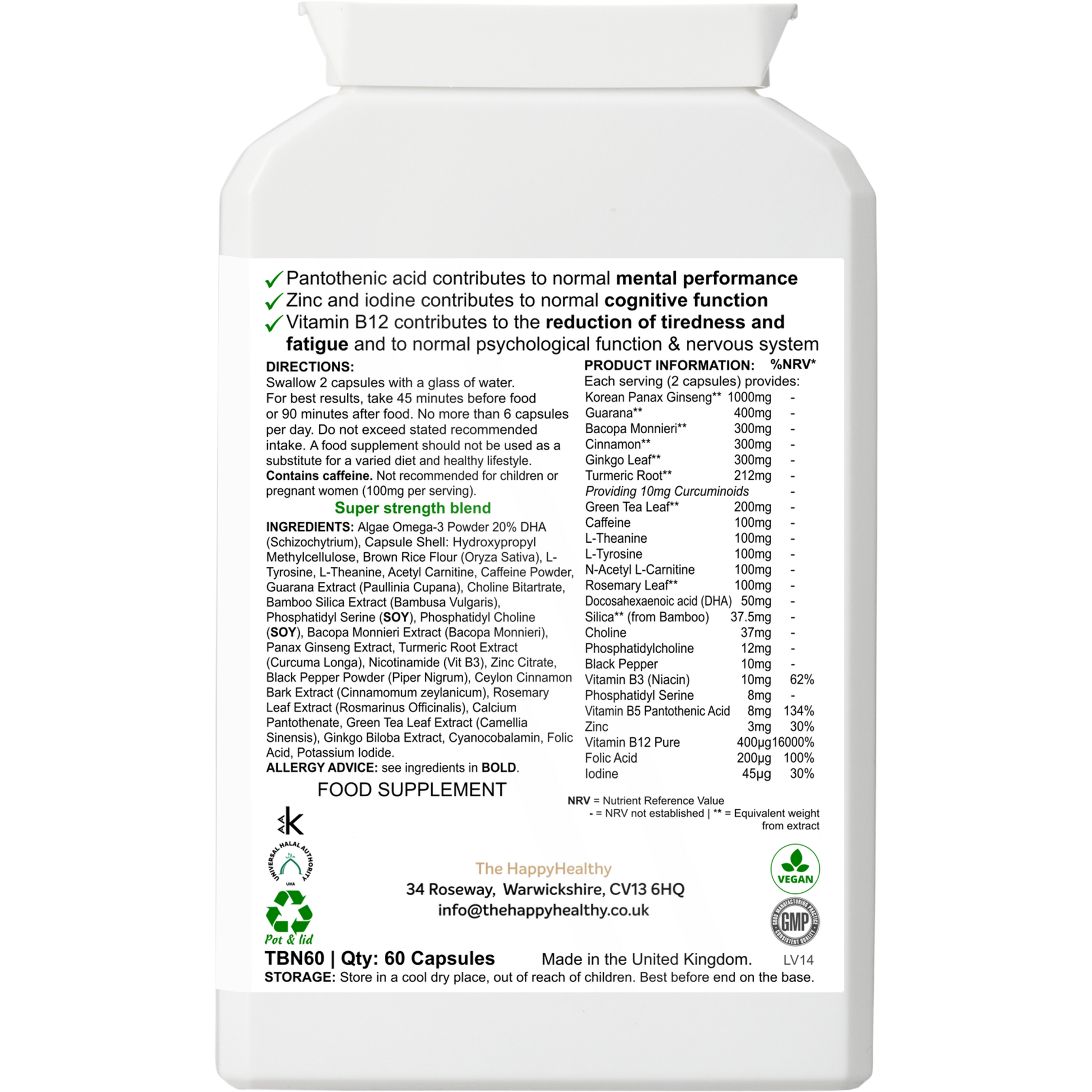 60 capsules - HappyHealthy 'Focus' is a super-concentrated, powerful food supplement for the brain - a natural nootropic and nutritional cognitive enhancer. And more!