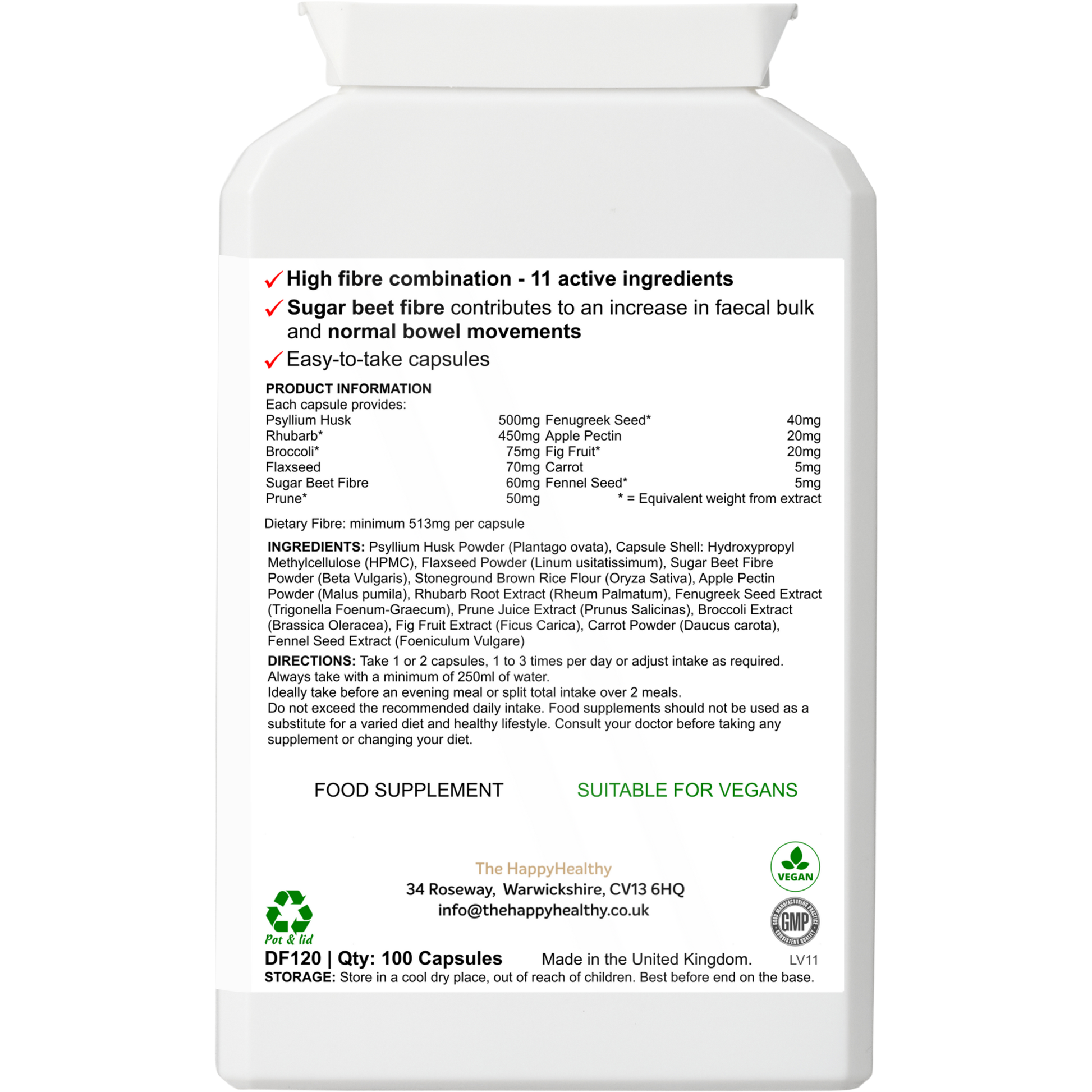 100 capsules - HappyHealthy Multi Fibre Dietary Boost is a multi-fibres blend, providing 513mg of dietary fibre per capsule.