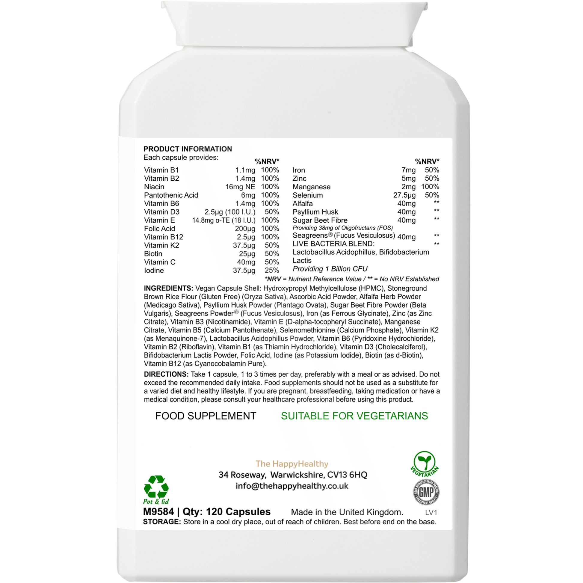 This comprehensive formula contains a broad spectrum of vitamins and minerals to support a variety of aspects of general health and wellbeing - everything from the immune system, energy levels, hormonal activity, bone health, hair, skin and nails and eye health, to muscle function, cognitive function, inflammatory response, liver function, heart function and much more - backed by science (see the specific EFSA approved health claims below).