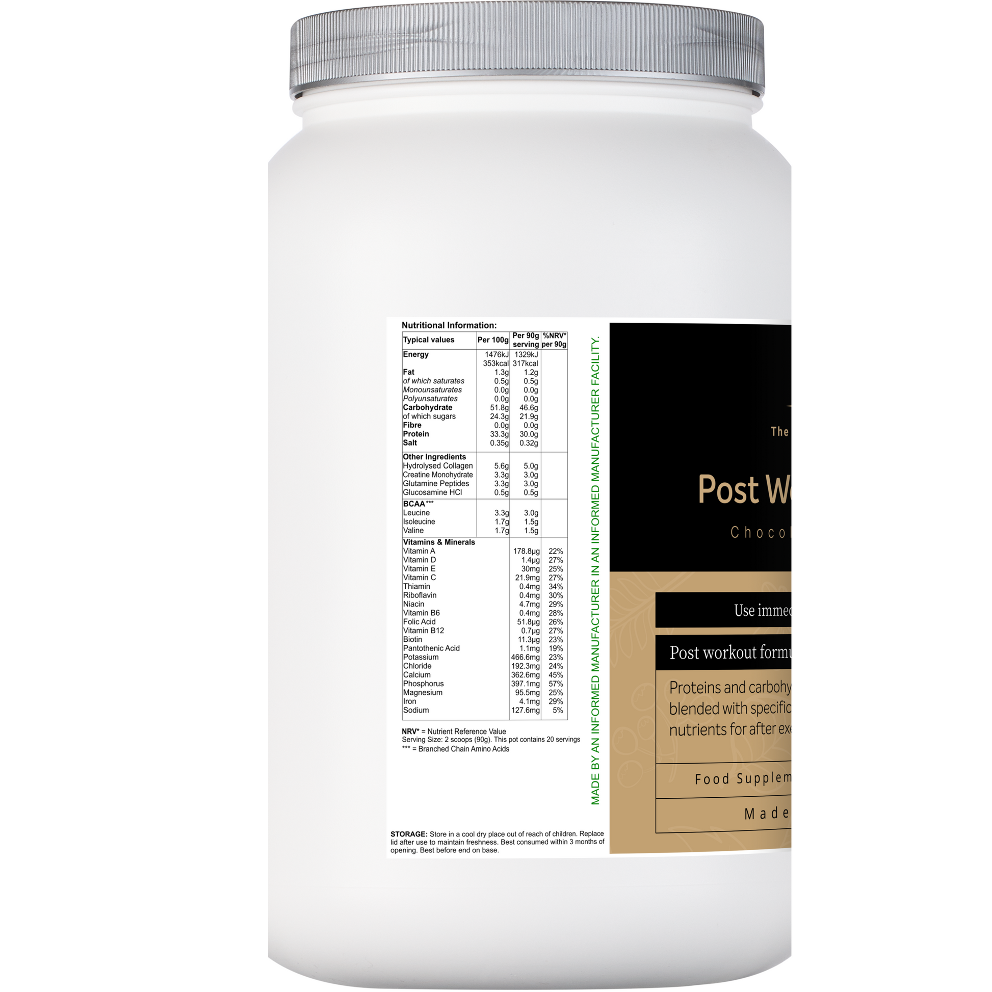 Part of our Sports Series, Post Workout is a delicious chocolate flavour drink mix, specifically formulated for this crucial point of exercise and designed to promote improved recovery, phased energy replenishment and rehydration.